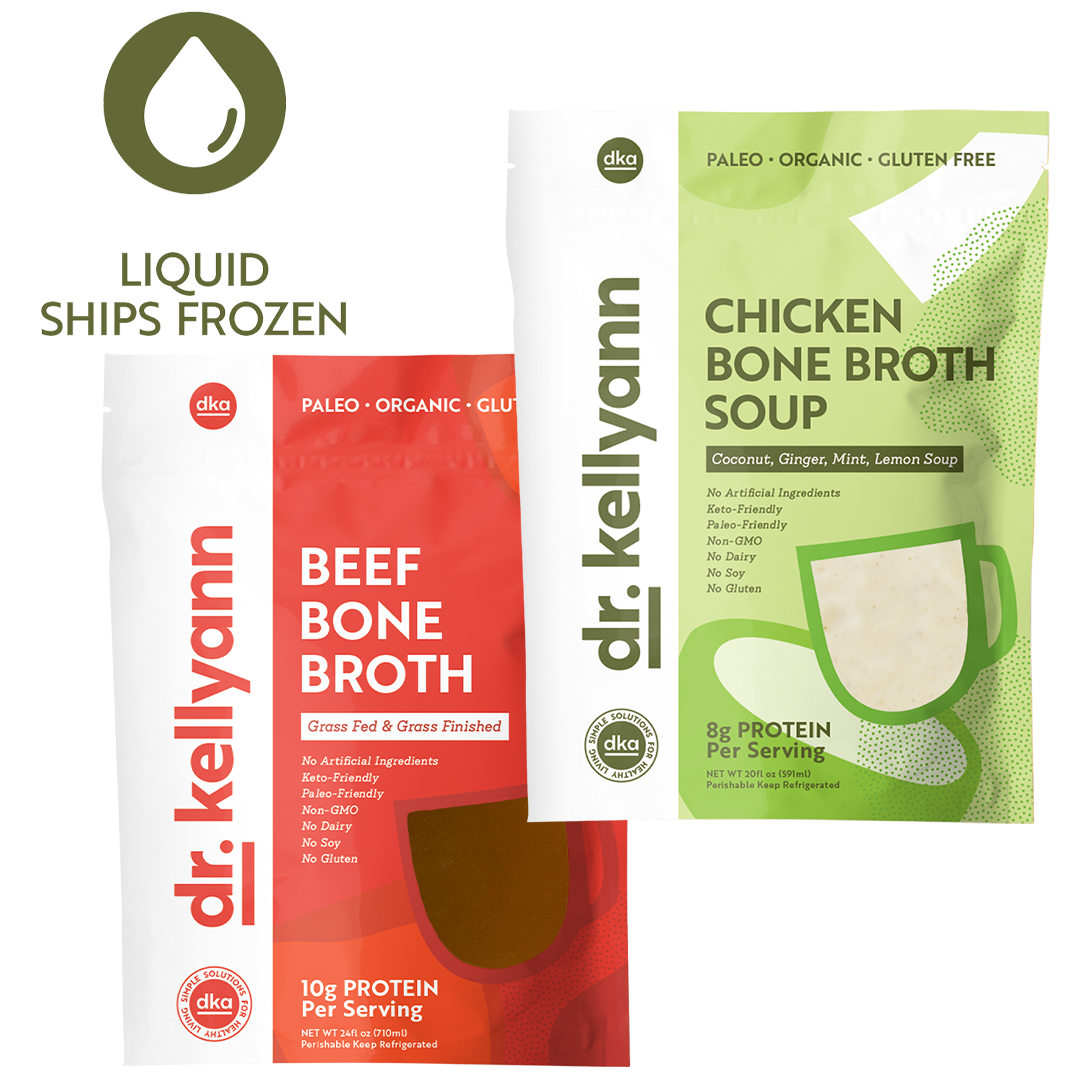 My liquid bone broth is just like homemade. It comes frozen and shipped in dry ice.